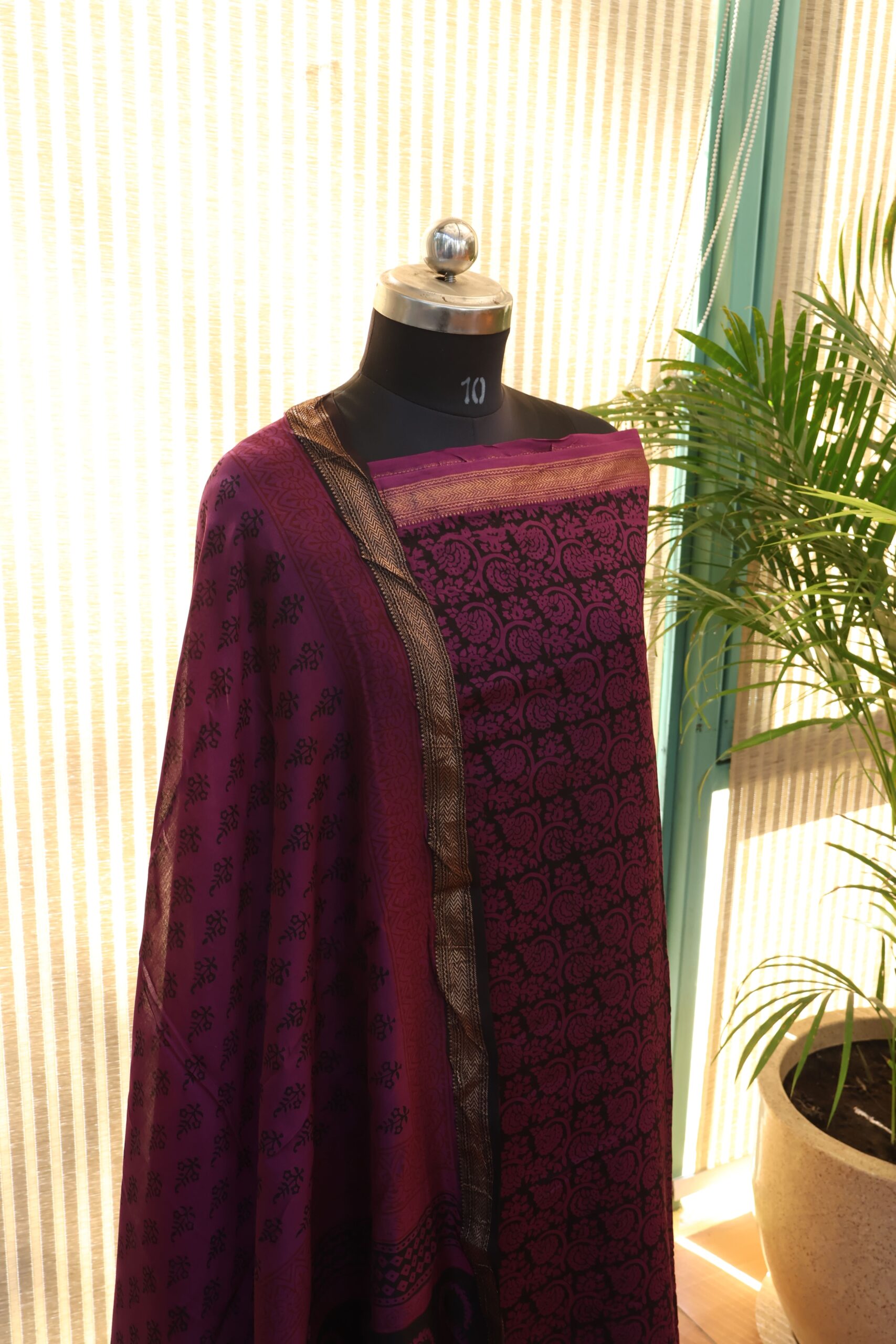 Bagh Print is a traditional Indian hand block printing craft from Bagh, Madhya Pradesh, made using natural dyes on pure cotton fabric. The designs are hand-printed by skilled artisans, then washed in flowing river water and sun-dried for a rich, authentic finish. Soft, breathable, and lightweight.